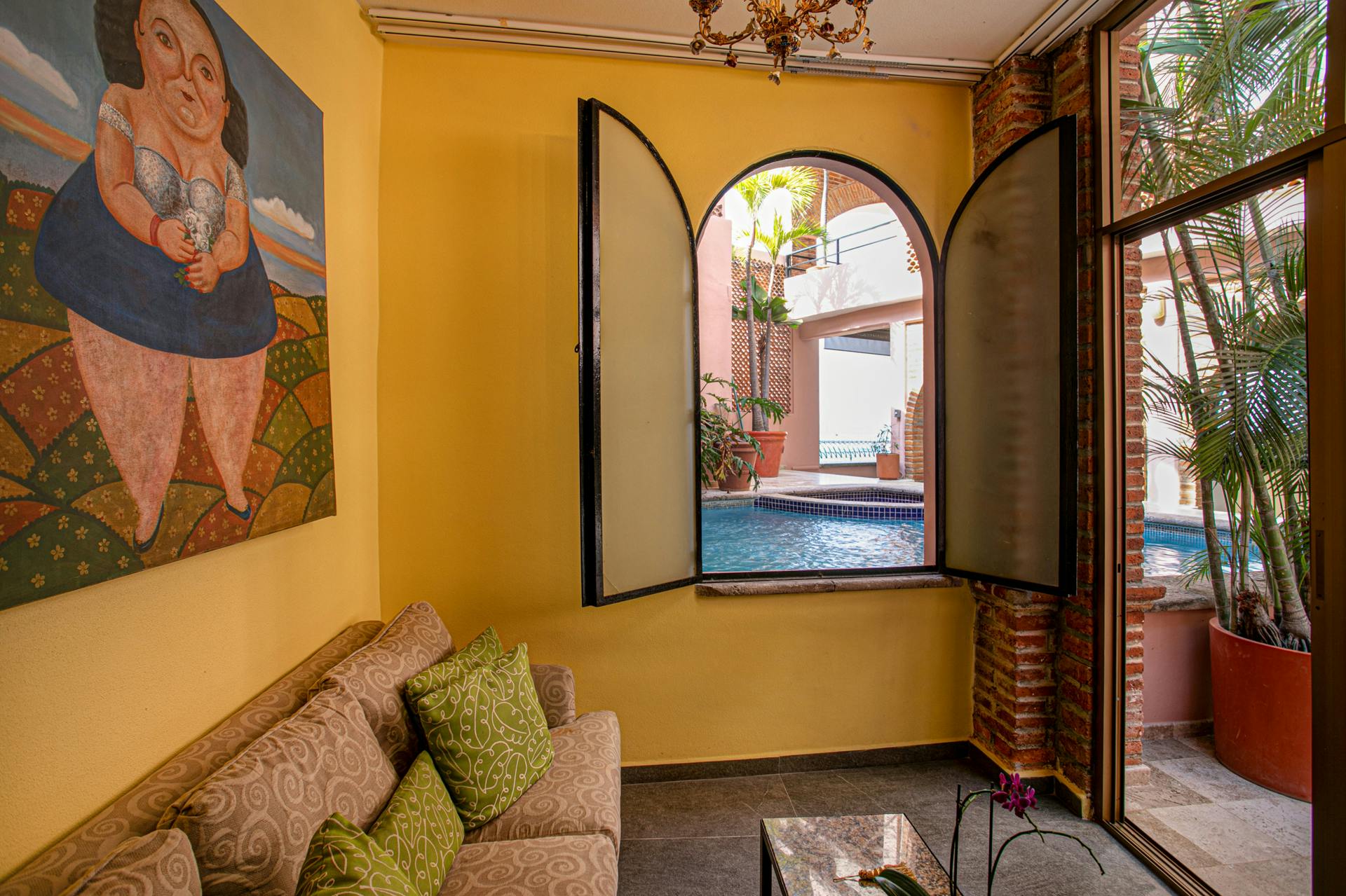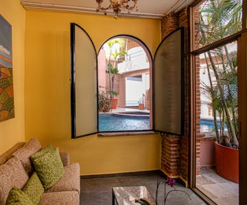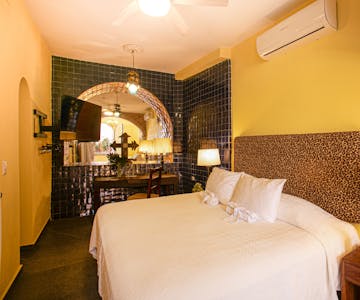 Positioned on a quiet beach accented by swaying palms, warm sand and gentle surf. This open-air room fuses modern comfort with colonial Mexican charm. Add a refreshing private pool, Jacuzzi, and you have found the perfect private beachfront hideaway. Air-conditioned king bedroom with sitting area and spacious bathroom.