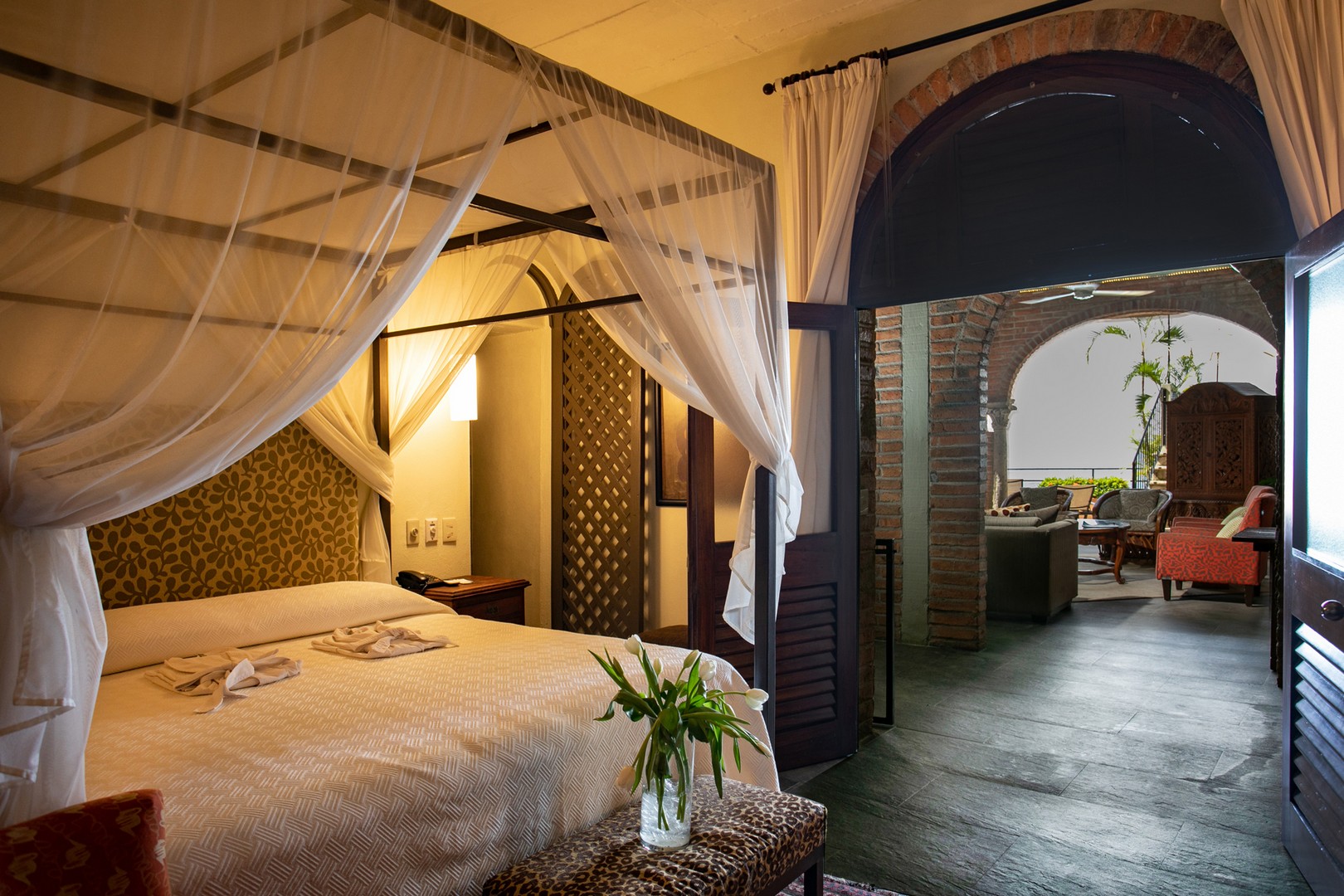 This air-conditioned bedroom includes a king-sized bed, private bath and television. It is the perfect choice for those that want to minimize stairs and be in the heart of the Villa.